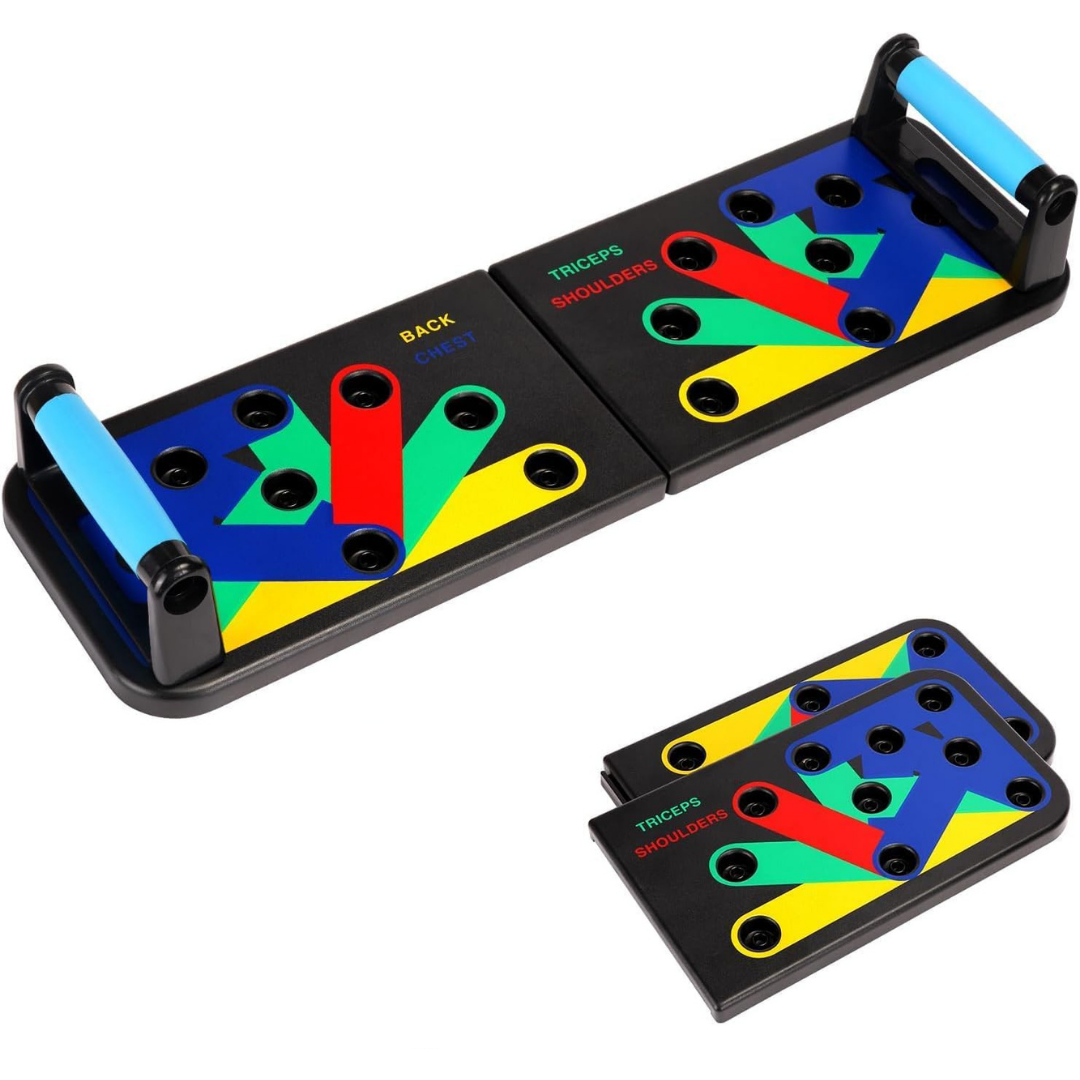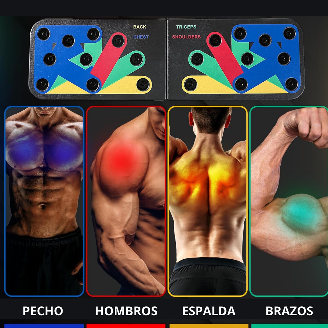 Diseño de la tabla de flexiones es una versión mejorada de barras de flexiones con guía codificada por colores, las asas de flexiones estables tienen posiciones simétricas para ejercitar diferentes partes del cuerpo: